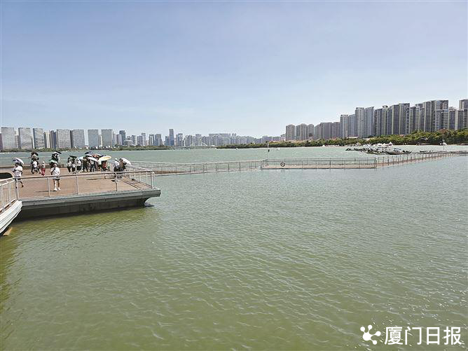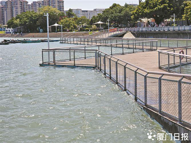 五缘湾湿地公园的木栈道部分区域被海水浸润。
