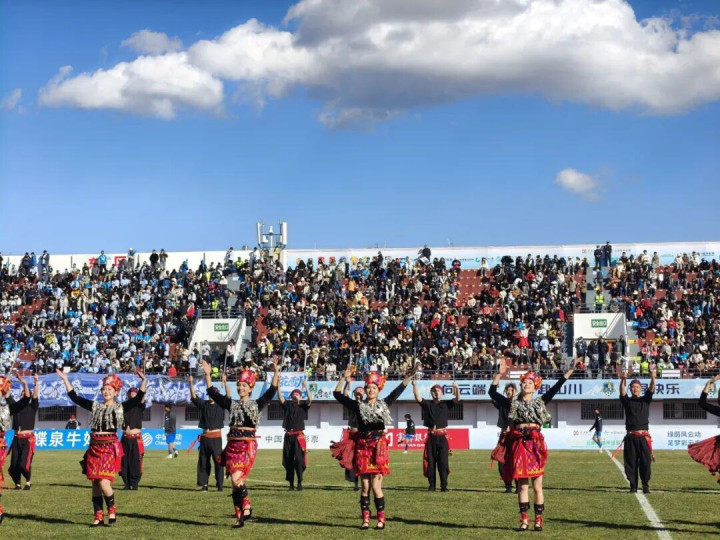 滇超联赛,更是凝聚民族情感的纽带。在德宏,傣家竹楼元素的加油牌与赛事氛围完美融合;在楚雄,彝族刺绣装饰的队服成为赛场亮点;在丽江,纳西族三朵节元素融入赛前表演……赛事就像一个文化熔炉,让各民族文化在交流中碰撞、在融合中共生,进一步强化了“各民族像石榴籽一样紧紧抱在一起”的文化认同。